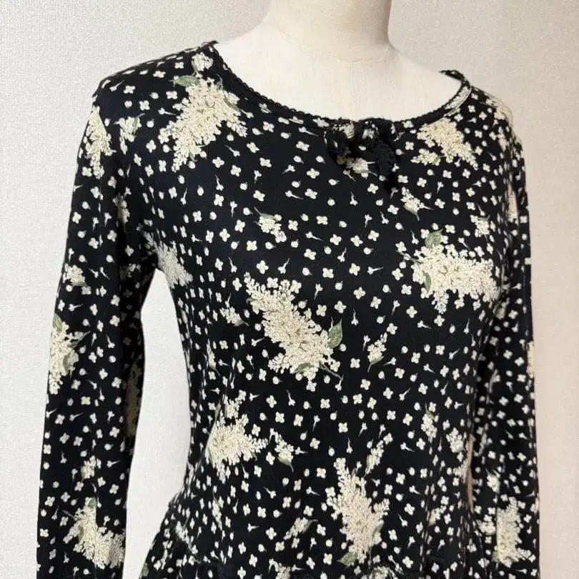 PINK HOUSE 원피스 꽃무늬 스즈란 패턴 긴팔 블랙