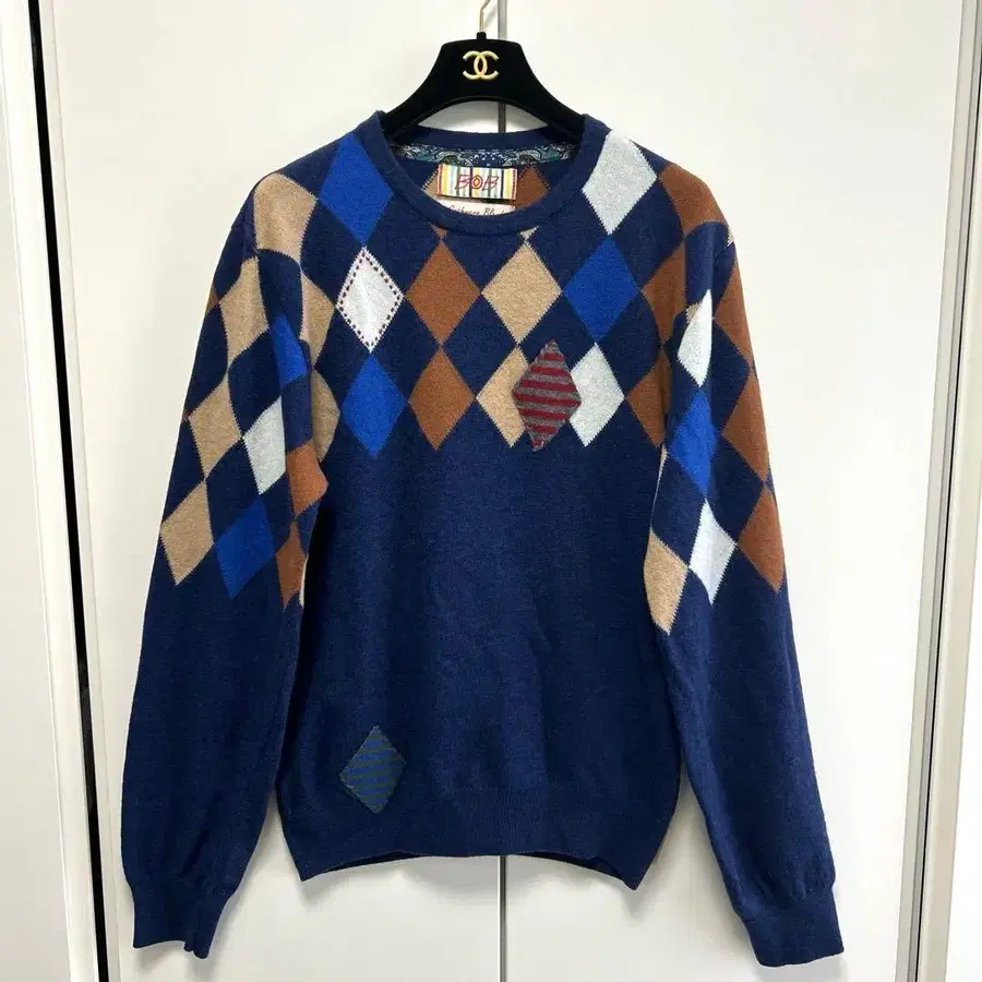 BOB 밥 아가일 패치워크 스웨터 캐시미어 혼방 네이비 x 브라운 계열