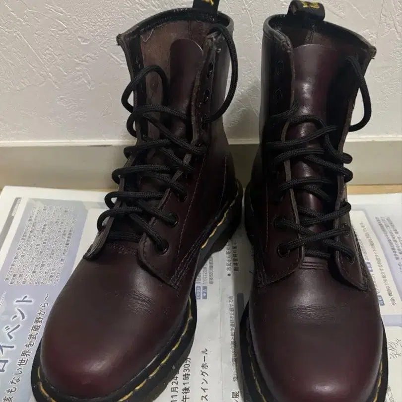 몇 번밖에 신지 않아 아직 깨끗한 상태입니다. 사진에 보이는 대로 사이즈는 지워져서 알 수 없지만, 평소 23.5인 제가 신었을 때 약간 여유가 있는 정도이므로 아마 UK5일 것으로 생각됩니다. 색상은 버건디로 가을/겨울에 딱 맞는 색상입니다. 영국에서 구매했지만 특별 모델은 아닌 것 같습니다. 상자 없음이므로 방수를 확실히 하고 봉투로 발송할 예정입니다. 발송 방법에 대해서는 상담해주세요. 잘 부탁드립니다. 색상 - 레드 계열 색상 - 브라운 계열 색상 - 레드 계열 소재 - 천연 가죽 얼룩, 찢김, 냄새 등 - 없음