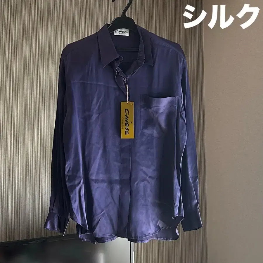 [ 미사용 새상품 ] 셔츠 블라우스 실크 100% 실크 퍼플 보라색 깔끔
