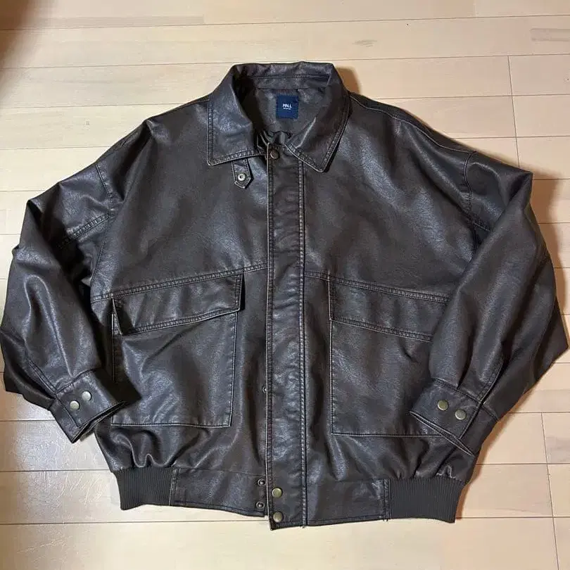히요쿠 디자인 빈티지풍 오버 사이즈 블루종 가죽 블루종