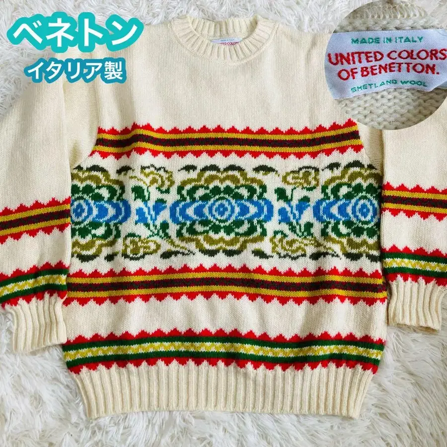 베네통 니트 스웨터 이탈리아제 꽃 무늬 컬러풀
