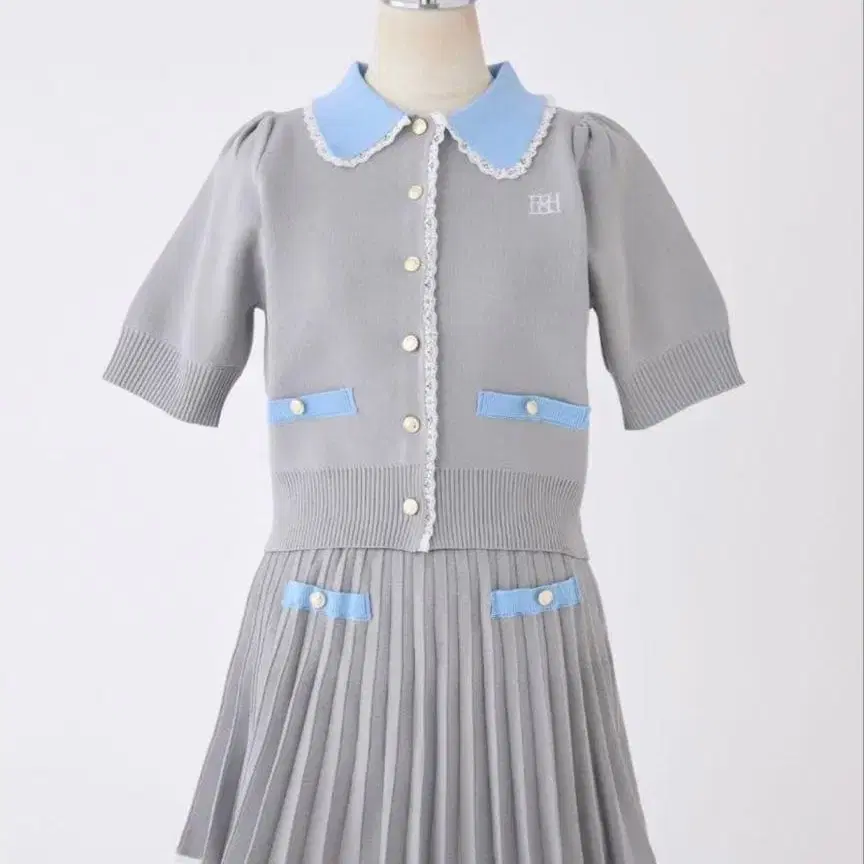 NICE CLAUP 폴로 칼라 반팔 니트 셋업 그레이 스카이블루