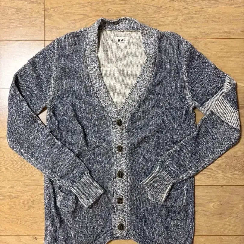 그레이 계열의 니트 가디건, 버튼이 달려 있어 스타일리시합니다. - 브랜드: RHC - 색상: 그레이 계열 - 소재: 니트 - 특징: 버튼 포함 - 택: RHC 특별히 눈에 띄는 데미지는 없지만, 중고품이므로 예민하신 분은 삼가해 주시기 바랍니다.