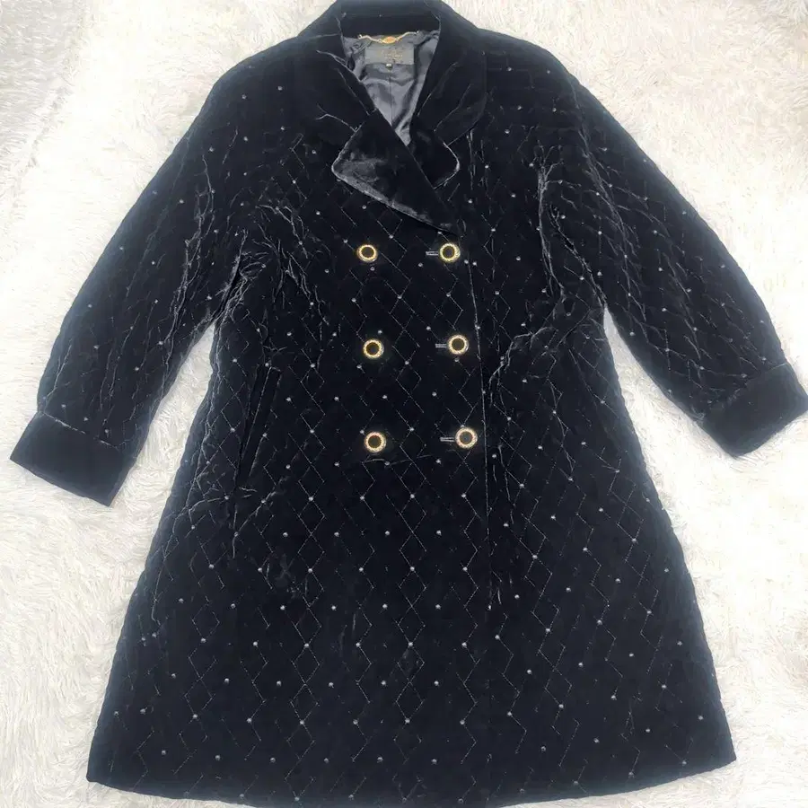 레리안 13+ 퀼팅 벨벳 벨로아 블랙 롱 코트