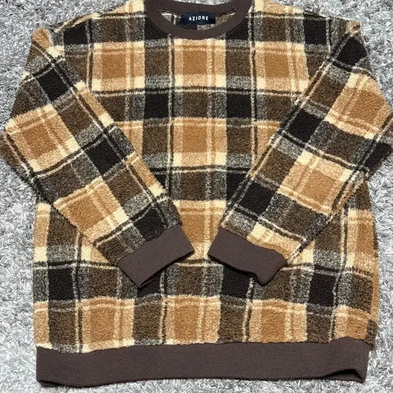 브라운 계열의 플리스 소재로, 리브 사양의 소매와 밑단이 특징인 체크 무늬 스웨터입니다. 사이즈 표기: M 실측치수(cm) 어깨 너비: 55 가슴 너비: 55 기장: 70 소매 길이: 54 방문해 주셔서 감사합니다. 눈에 띄는 얼룩은 없지만, 자택 보관품이므로 이해와 양해를 부탁드린 후 구매해 주시기 바랍니다.