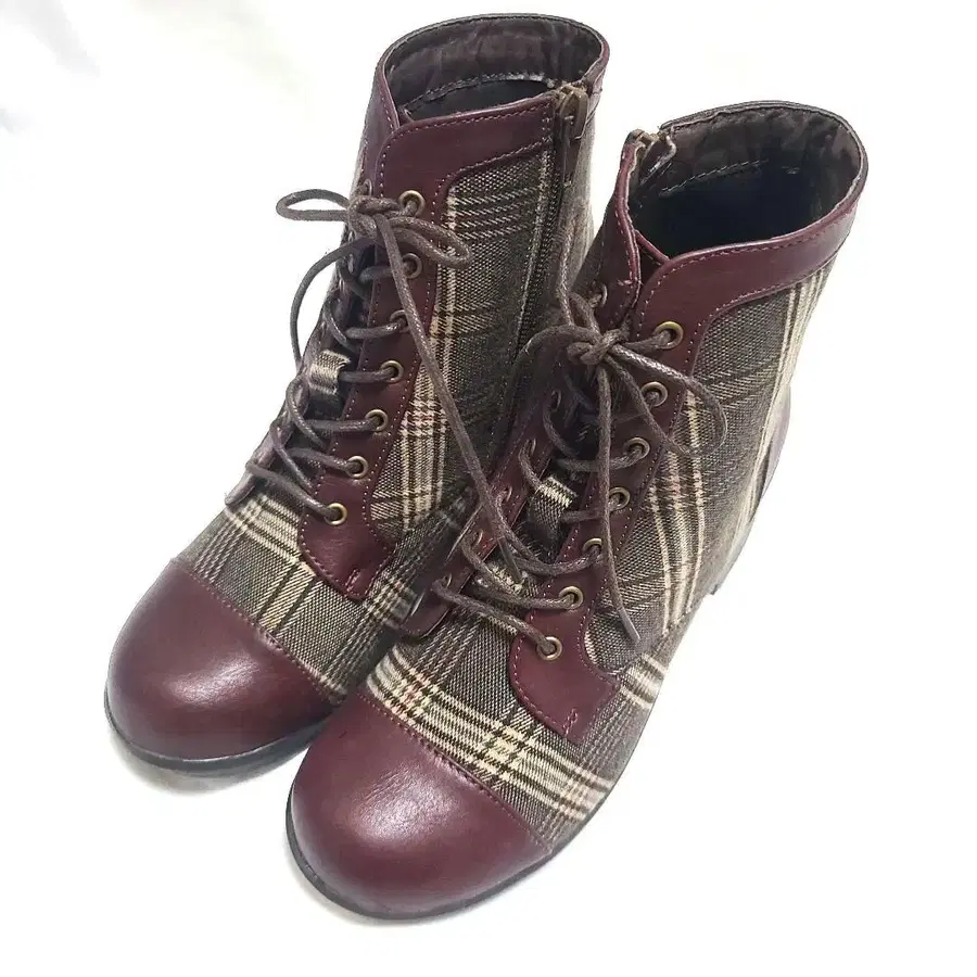 by 키다리 아저씨 레이스업 숏부츠 체크 브라운