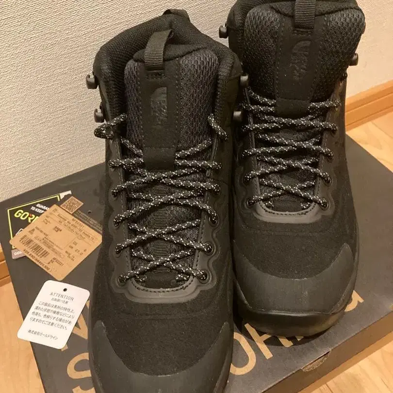 비닐봉지를 감싸서 상자에 넣어 보내드립니다. GORE-TEX 소재를 사용한 블랙 트레킹 슈즈. 미사용 새상품 구매했으나 신지 않고 보관했습니다. 보관 기간도 있어 '미사용에 가까움'으로 판매합니다. - 브랜드: The North Face - 모델: NF52331 - 사이즈: 27.0 cm - 색상: 블랙 - 소재: GORE-TEX 방문해 주셔서 감사합니다.