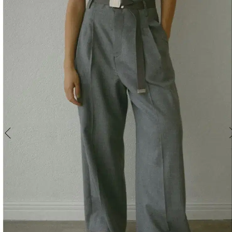 ETRE TOKYO 하이웨스트 벨티드 세미 와이드 팬츠 그레이