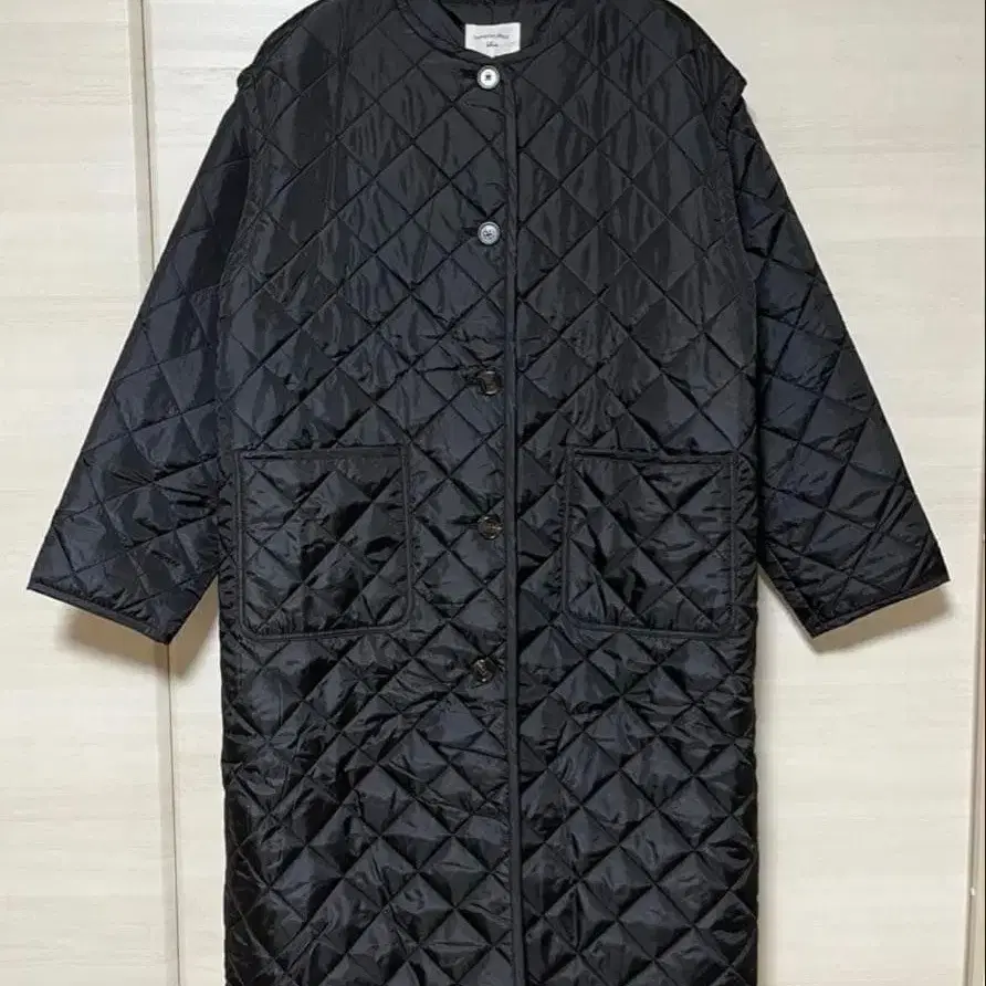 Samansa Mos2 blue 2way 퀼팅 롱 코트 얇은 소재 블랙