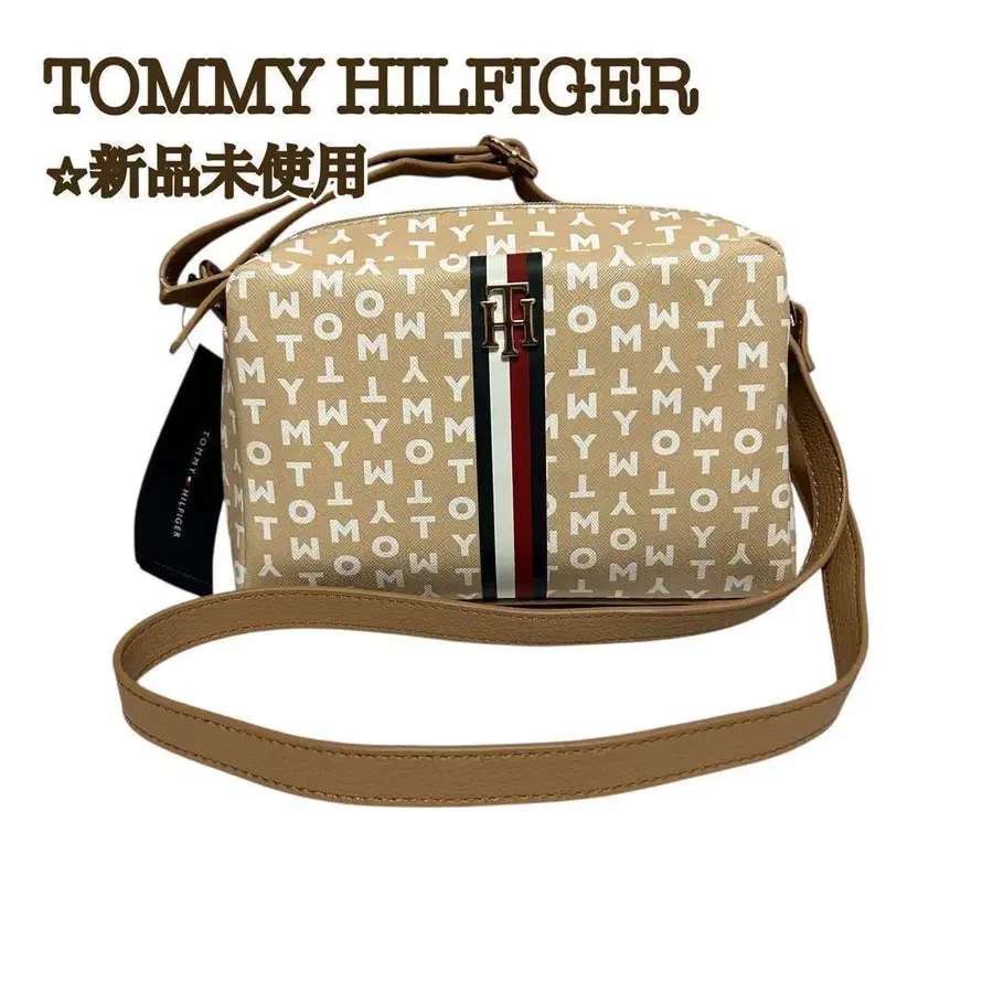 브랜드를 상징하는 TOMMY 모노그램이 전체적으로 새겨져 있어 럭셔리한 느낌을 줍니다. 중앙에는 트리콜로 라인이 들어가 있어 베이지 색상과의 조합이 성숙하고 고급스러운 인상을 줍니다.