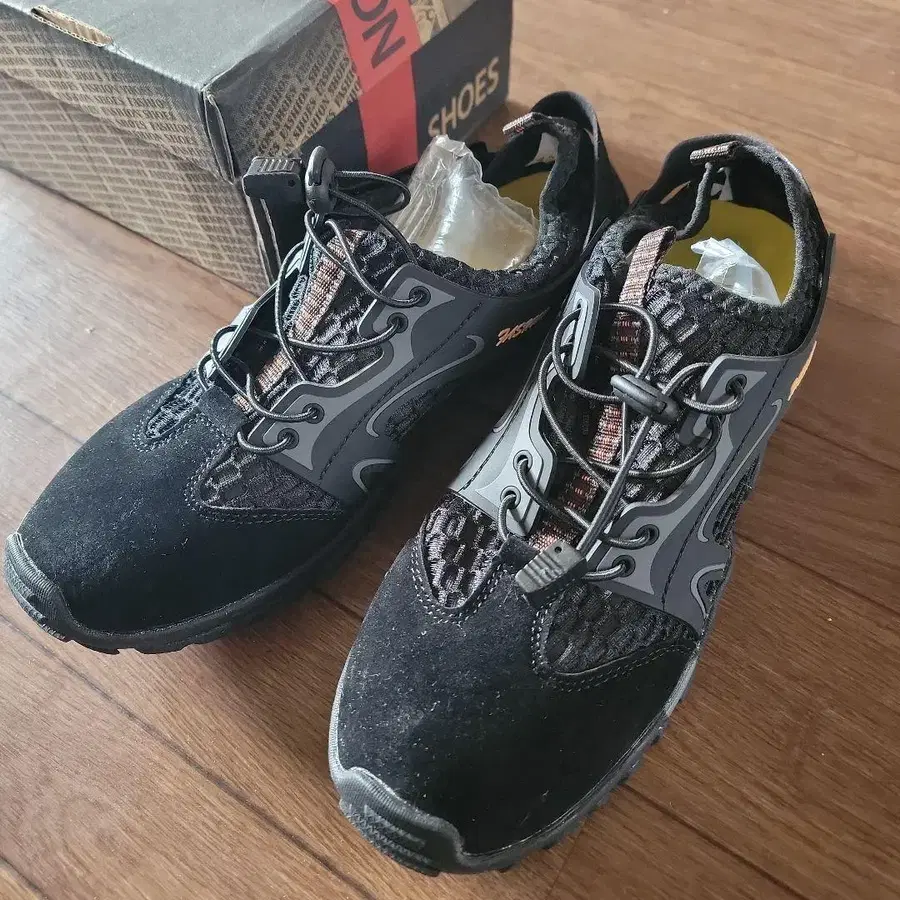 신축성 슈레이스와 스웨이드 소재의 아웃도어 신발. 원가 3680엔이었습니다. 스파르탄 레이스용으로 구매했습니다. 사이즈를 잘못 구매했습니다. 미사용입니다. 자택 보관으로 인한 보관 상태는 양해 부탁드립니다. 수륙 양용 사이즈는 42라고 적혀 있습니다. 미국 사이즈로 생각됩니다. 25cm 발에 컸습니다. 26cm부터 26.5cm이신 분이 신으실 수 있을 것 같습니다. 하지만 정확히 딱 맞다고는 말씀드릴 수 없으니 양해 부탁드립니다. 산에서도 갯벌에서도 둘 다 갈 수 있을 것 같습니다. 신발 앞부분이 튼튼한 소재였습니다.