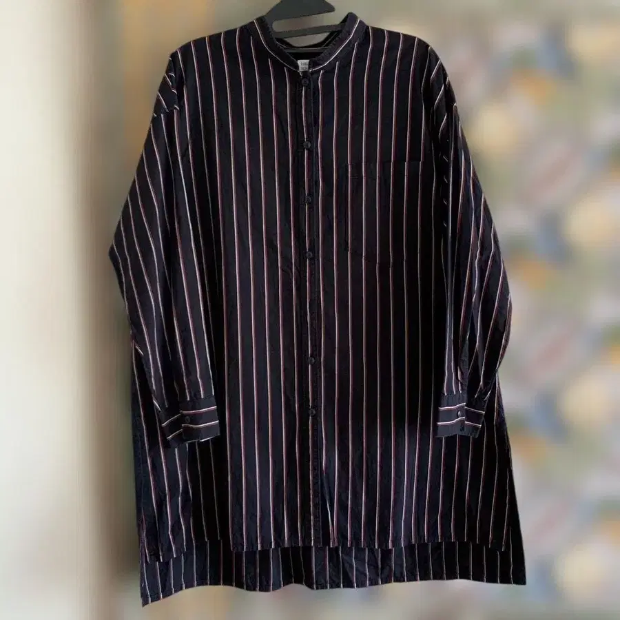 새상품급 IENA 밴드 카라 셔츠 스트라이프 드레이프감 루즈핏 워셔블