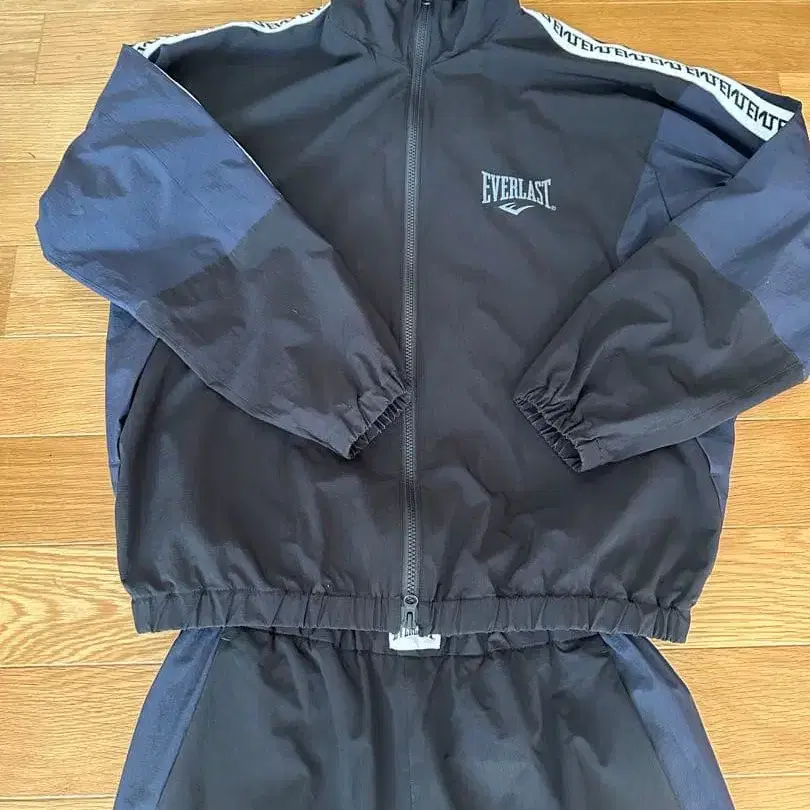 EVERLAST 에버라스트의 블랙과 짙은 네이비 투톤 상하의 저리 세트. (사진보다 실물이 더 어둡고 짙습니다.) 사이드 스트라이프와 상하의 각각에 GREATNESS 프린트, 겉옷 뒷면에는 통풍구가 특징입니다. - 브랜드: EVERLAST - 색상: 블랙/네이비 - 스타일: 저리 상하의 세트 - 상태: 시착 정도의 새상품급 사이즈: M이지만, M-L 정도입니다. 상하의 안쪽은 메쉬, 표면은 바스락거리는 나일론 원단으로 되어 있어 다가오는 계절에 최적이라고 생각합니다.