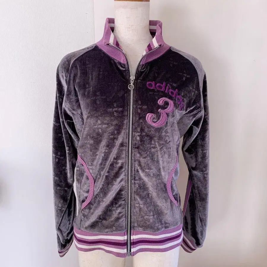 • adidas 그레이 벨로아 트랙 자켓