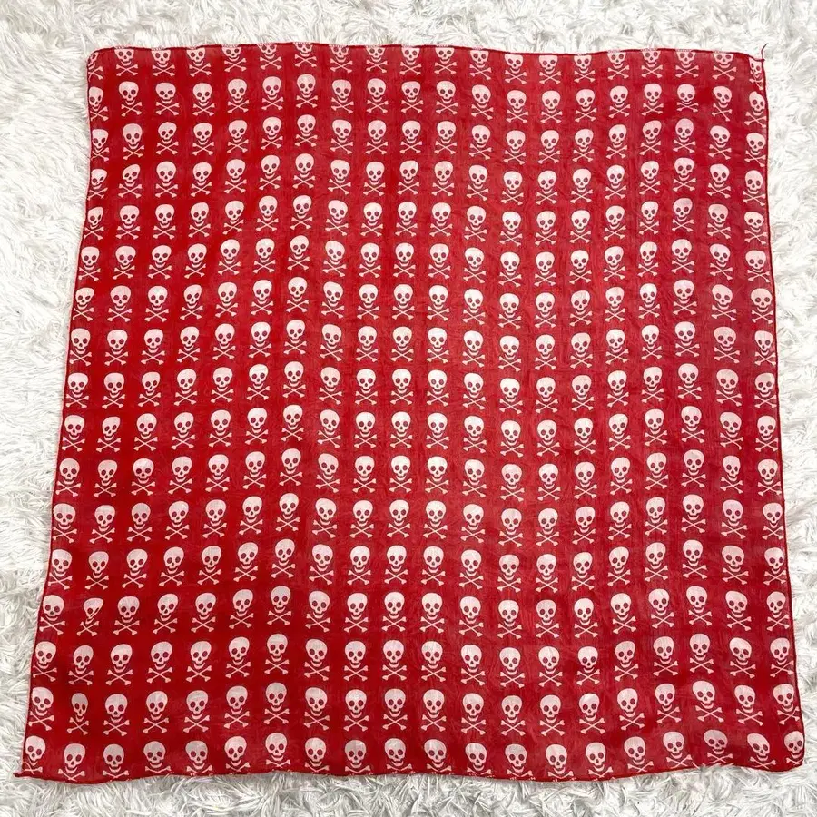 선명한 레드에 무수한 스컬이 늘어선, 존재감 발군의 대형 스카프.
