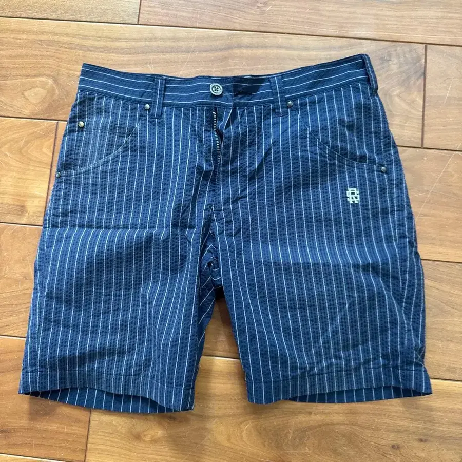 러프 앤 스웰 반바지 - 색상: 네이비 - 디자인: 스트라이프 - 포켓: 백 포켓 있음 눈에 띄는 상처는 없지만, 오른쪽 포켓 부분에 약간 옅은 색 바램이 있습니다. 구제 의류이므로 노클레임으로 잘 부탁드립니다. 방문해 주셔서 감사합니다.