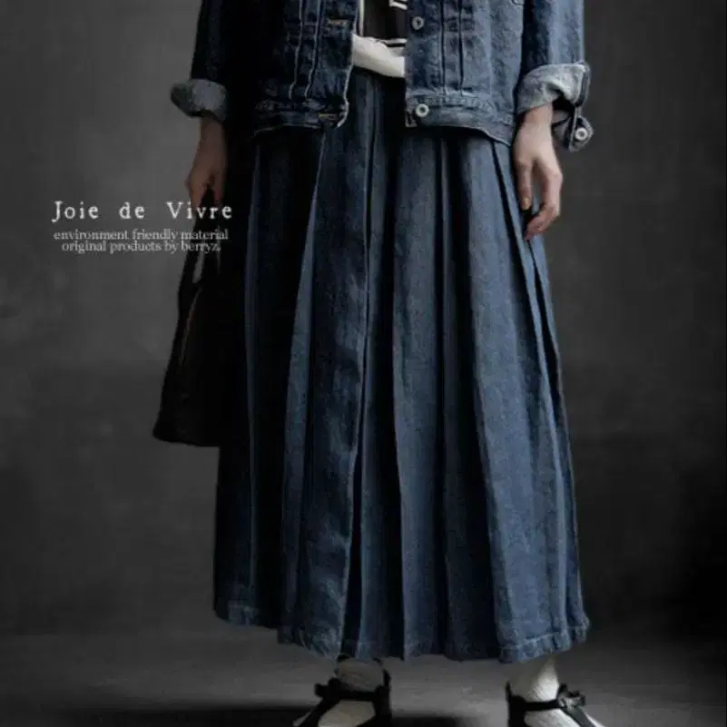 Joie de Vivre 린넨 10온스 데님 바이오 빈티지 턱 스커트