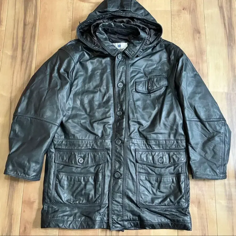 빈티지 ROBO 후드 부착 가죽 코트 80s90s