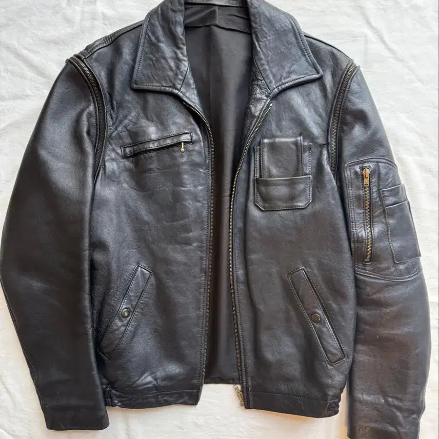 • 천연 가죽 80s vintage 프랑스군 가죽 플라이트 자켓