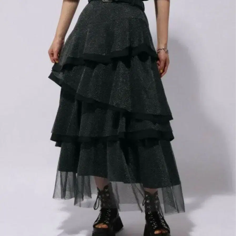 HARE 라메 시어 믹스 캉캉 스커트 블랙 모드 블랙