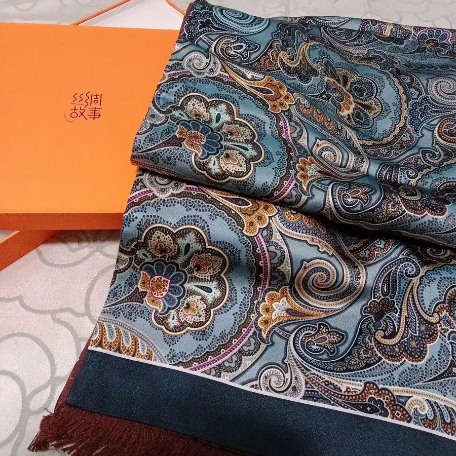 페이즐리 무늬 실크 머플러 SILK STORY 미사용품
