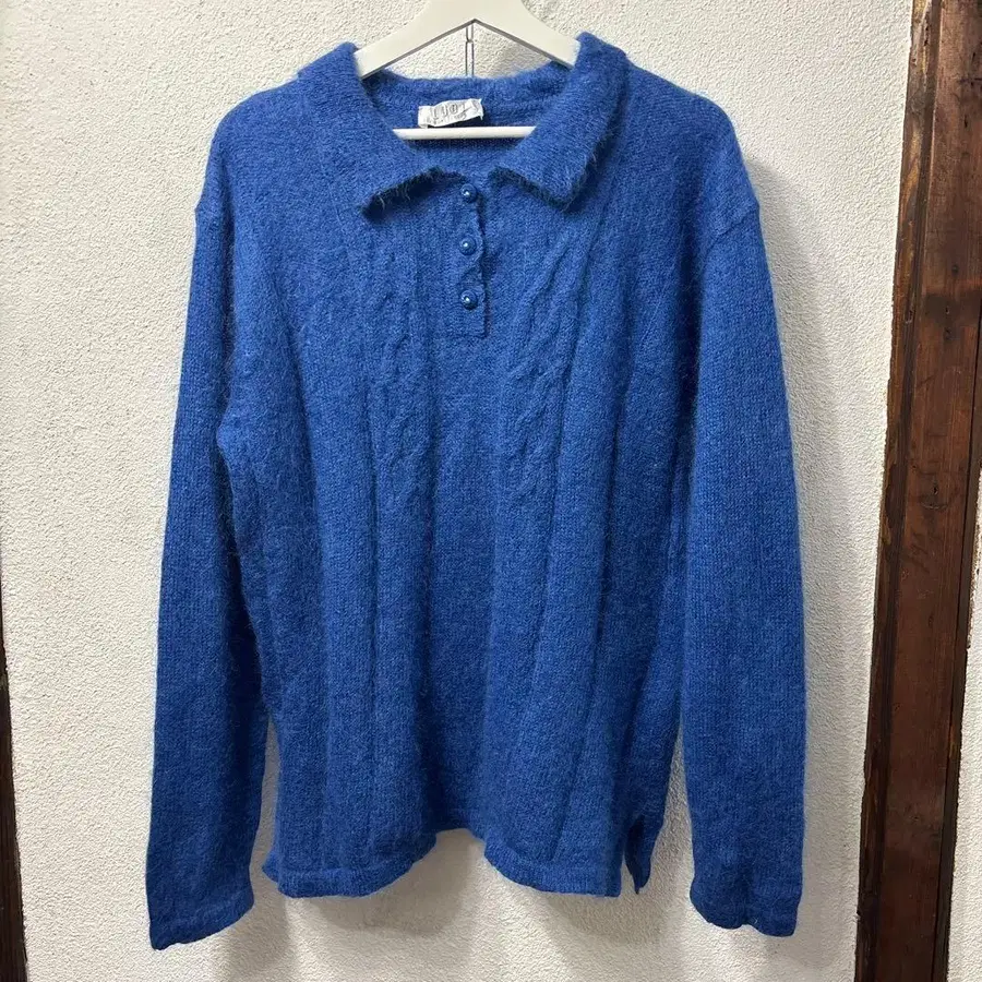 이탈리아제 구제 모헤어 풀오버 파란색 폴로 셔츠 스타일 긴팔 니트