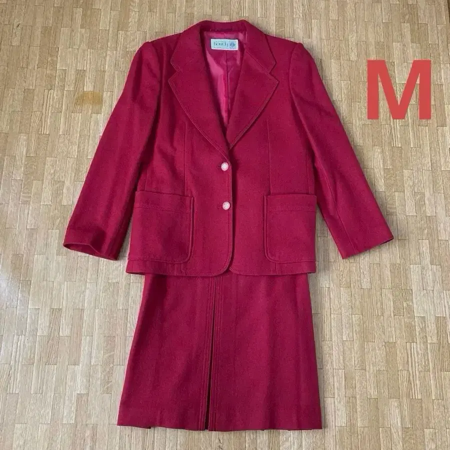 자켓&스커트 셋업 수트 와인 레드 울 100% 사이즈 M