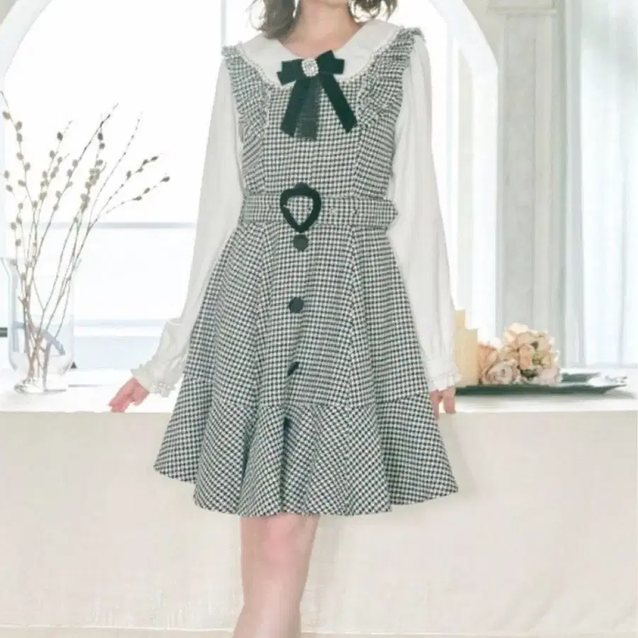 [ LIZ LISA ] 하운드 투스 에이프런 원피스