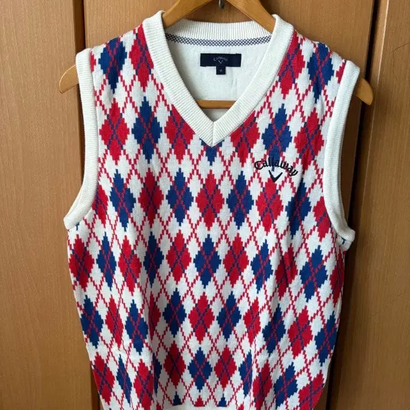 캘러웨이 남성용 베스트 M 빨간색, 파란색, 흰색 다이아몬드 패턴