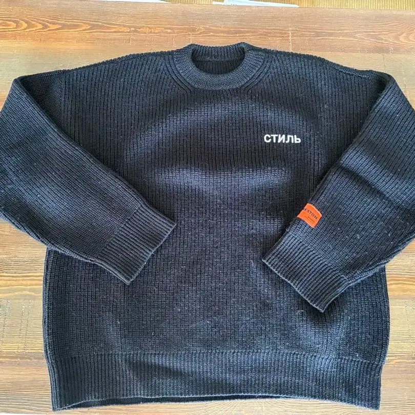 리브 짜임의 블랙 스웨터, 왼쪽 소매에 HERON PRESTON 라벨 있음 - 브랜드: HERON PRESTON - 색상: 블랙 - 디자인: 리브 짜임 - 특징: 왼쪽 소매에 오렌지색 라벨 있음 - 텍스트: СТИЛЬ (스타일) 구매처: FARFETCH 부속품: 구매 명세서와 택 포함. 스웨터 특유의 보풀이 옷깃 주변과 소매에 있음. 방문해 주셔서 감사합니다.