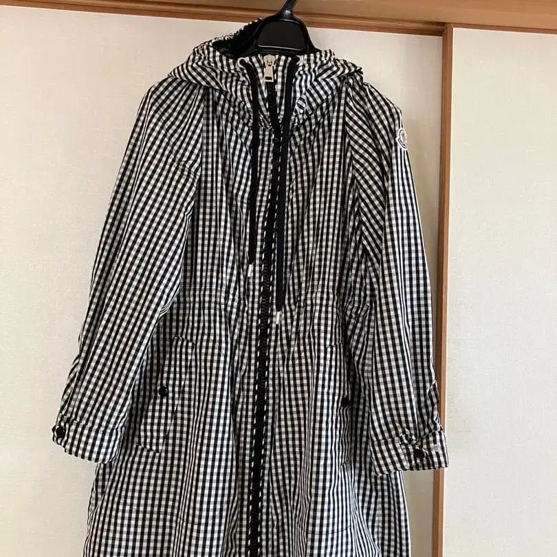 후드 부착된 블랙 화이트 체크 무늬의 MONCLER 자켓, 허리 조절 가능. - 색상: 블랙 화이트 체크 무늬 - 지퍼: MONCLER 제조 지퍼 - 로고: MONCLER 자수 로고 - 후드: 후드 부착 - 스타일: 허리 조절 가능한 디자인 방문해 주셔서 감사합니다. 스프링 코트