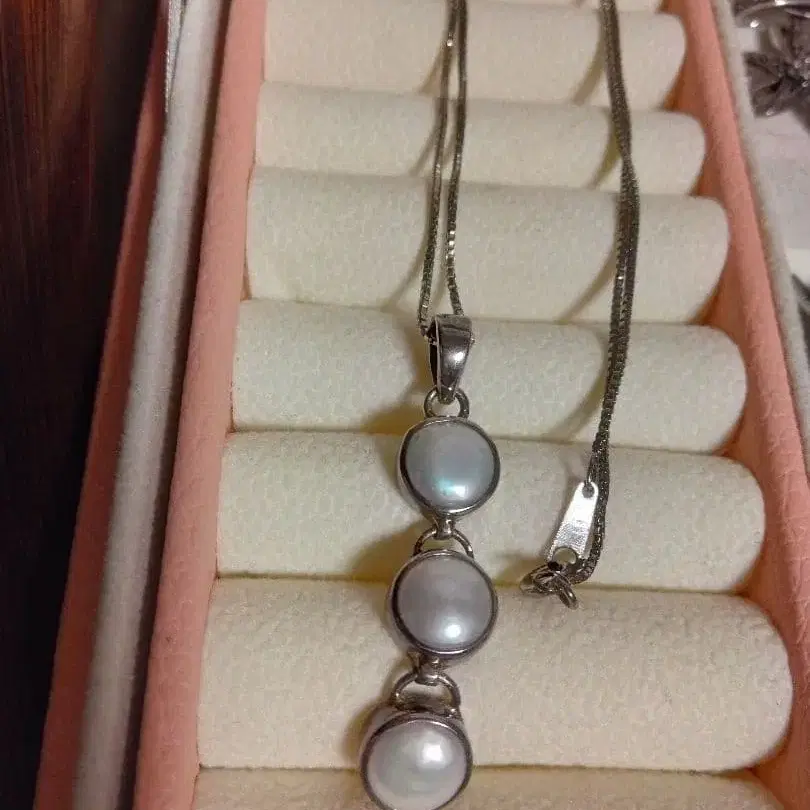 최종 가격 인하 UC 실버 925 3연 펄 목걸이
