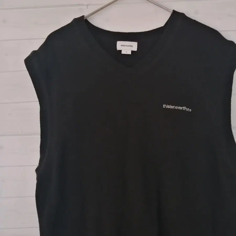 V넥 디자인의 블랙 슬리브리스 베스트, 로고 자수 포함 사이즈: L 기장: 74cm 어깨 너비: 52cm 가슴 너비: 55cm ※ 개인 측정으로 약간의 오차가 있을 수 있습니다. ※ 눈에 띄는 얼룩이나 데미지는 없지만, 구제 의류이므로 이해하시는 분만 구매 부탁드립니다. ※ 입고 시 검품, 손세탁 클리닝 완료 ( 검품 시 놓치는 부분이 있을 수도 있습니다 ) - 브랜드: thisisneverthat - 색상: 블랙 - 디자인: V넥, 슬리브리스 - 자수: 로고 자수 있음