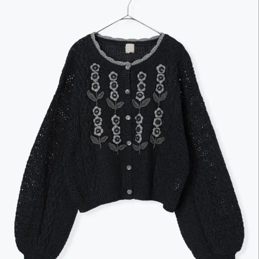 TSUHARU 코바늘 꽃 모티브 니트 가디건 블랙 차콜