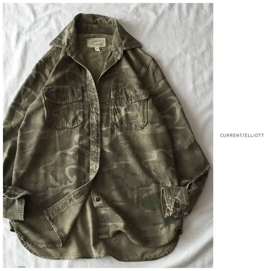 커렌트 엘리엇 [세탁 가능] 빈티지 워시 가공 카모플라쥬 셔츠