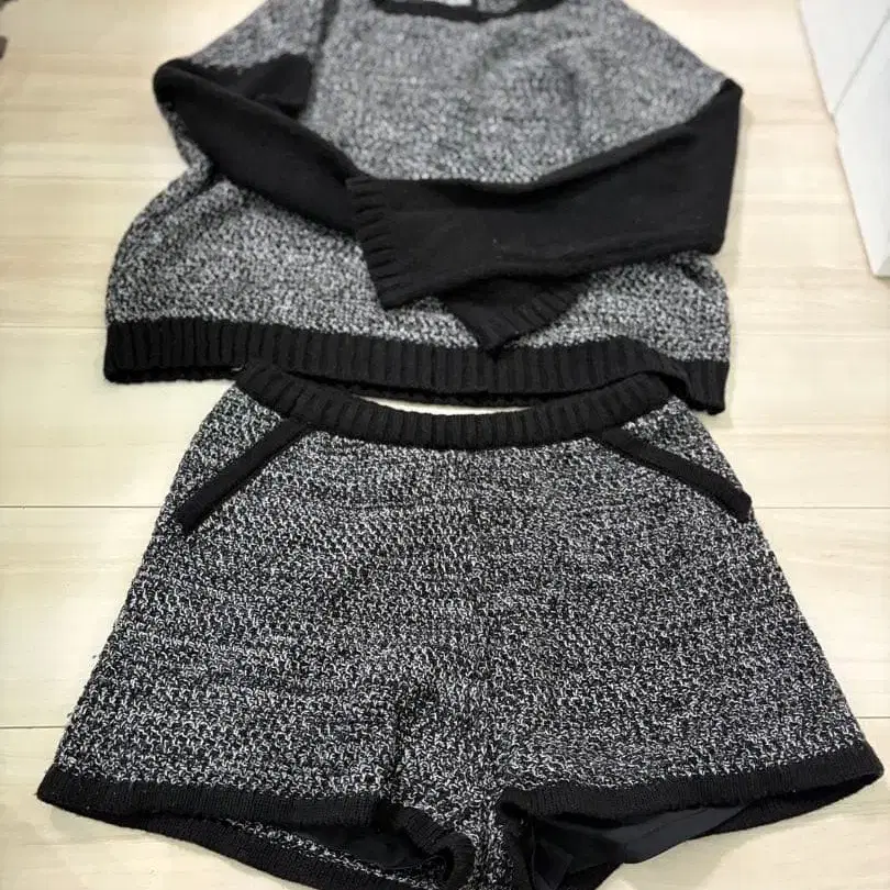 자동 번역되었어요. 원문보기블랙과 그레이의 트위드풍 니트 셋업, 캐주얼한 스타일에 최적.