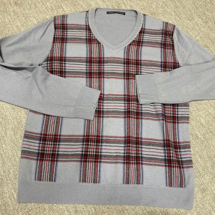 오리지널 빈티지 스타일 그레이 체크 니트 캐시미어