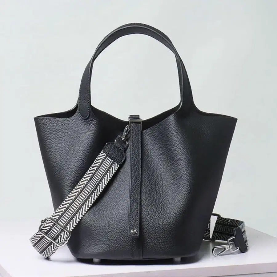 천연 가죽 백 고급 천연 가죽 여성용 토트백 금장 장식