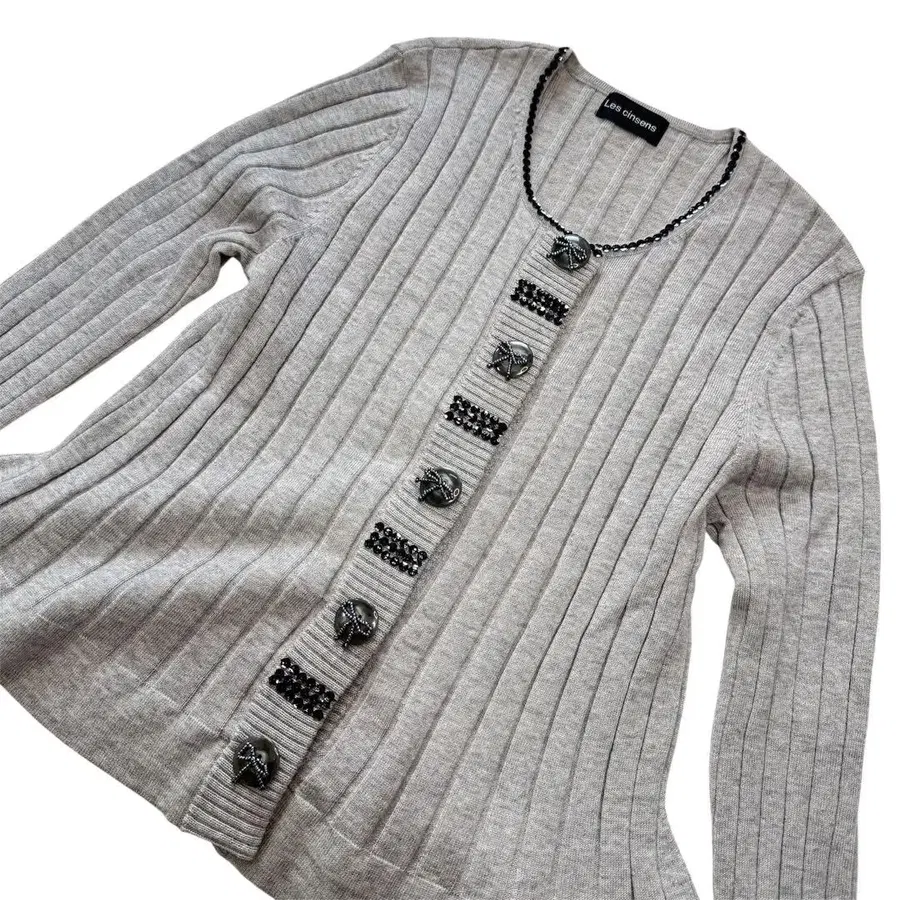 Les cinsens 가디건 리본 비즈 스팽글 그레이