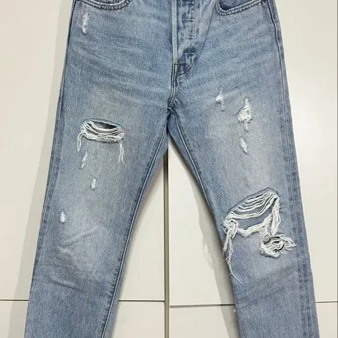 접힌 주름은 있지만, 흠집 등 없이 비교적 깨끗합니다. 리바이스 501 스트레이트 핏 JEANS FOR WOMEN CLEAN CUT 24/30 PC-9-12501-0308 데미지 가공이 들어간 라이트 블루 스트레이트 데님, W24 L30 사이즈. - 사이즈: W24 L30 - 디자인: 데미지 가공 - 색상: 라이트 블루 방문해 주셔서 감사합니다.