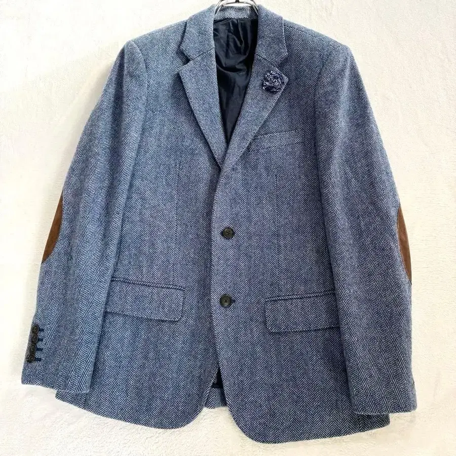 JACK SPADE 잭 스페이드 테일러드 자켓 M 헤링본 엘보 패치 울 블루 레어
