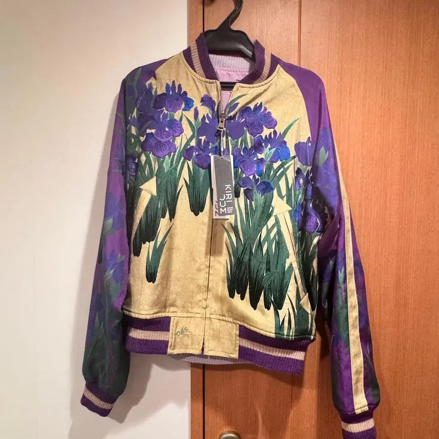 KIRIJUM S 실크 100% 보라색 꽃무늬 스카잔