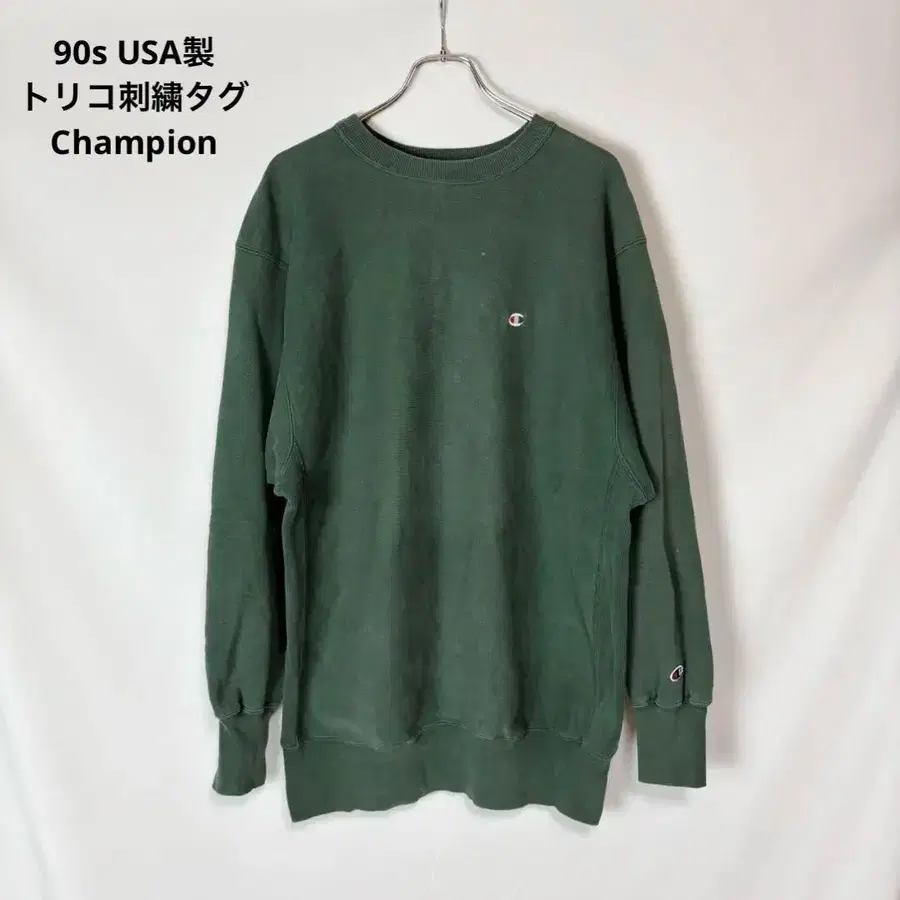 레어 사이즈 90s USA제 트리코 자수 택 Champion REVERSE WEAVE 챔피온 리버스 위브 원포인트 로고 맨투맨 트레이닝복 빅 사이즈 그린 계열 XXL