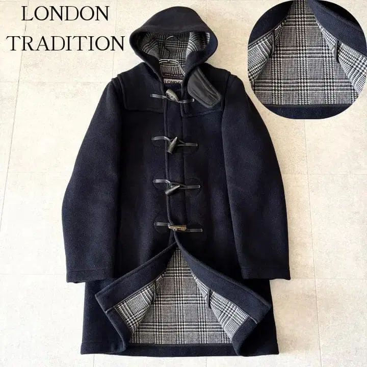 안감 체크 런던 트래디션 더플 코트 38 네이비 토글