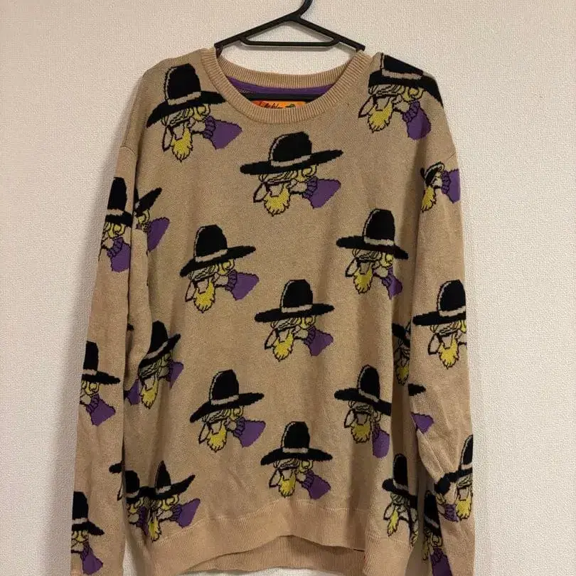 Left Alone 니트 베이지 캐릭터 올 패턴 면