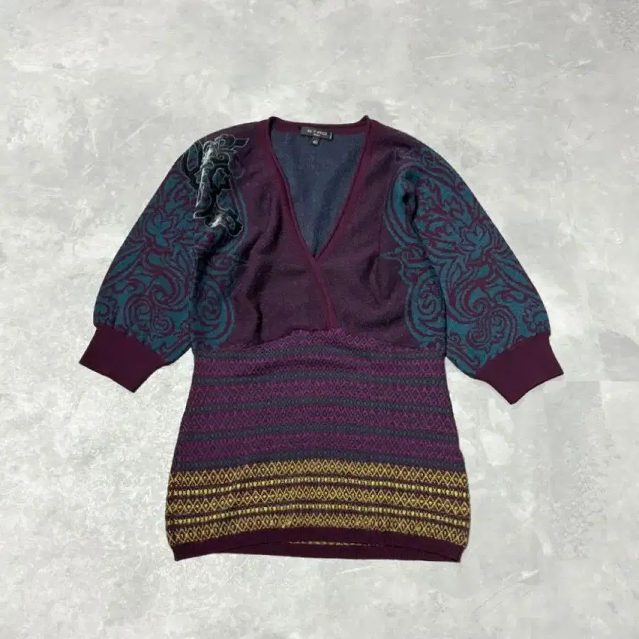깊이 있는 버건디와 터콰이즈 블루의 대비가 아름다운 에트로의 니트탑.