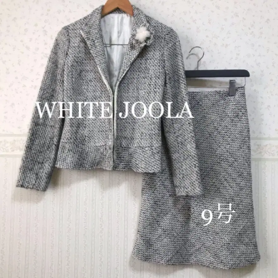 화이트 조라 트위드 셋업 스커트 수트