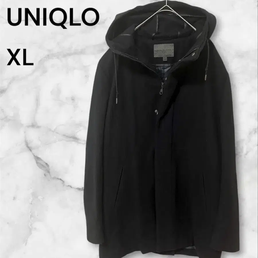 유니클로 울 코트 자켓 다운 블랙 후드 후드티