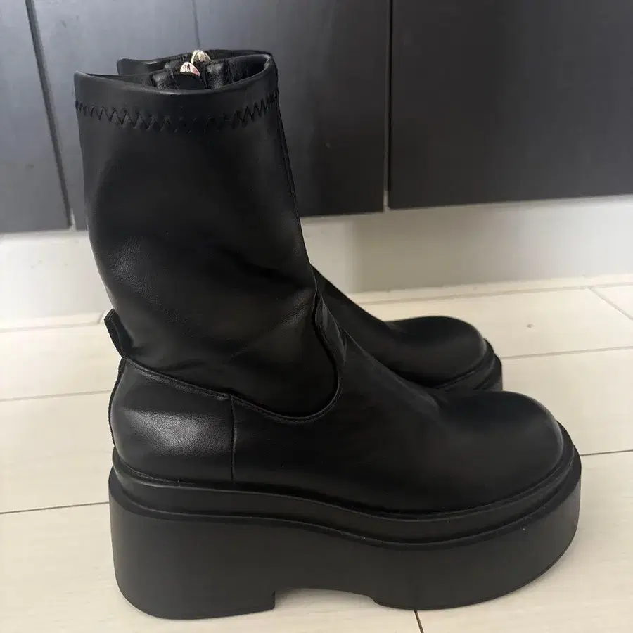 [ 새상품급 ] R&E 사이드 고어 부츠 트랙 밑창 통굽 블랙 블랙